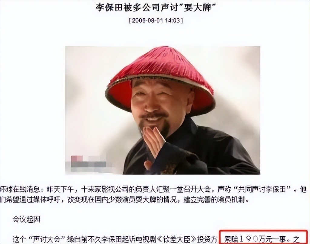 2004年,《钦差大臣》播出时由原定30集擅自扩容至33集,李保田毅然提起诉讼,指控剧方恶意注水、损害艺术完整性。